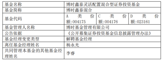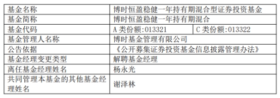 中国经济网北京3月13日讯 今日,博时基金管理有限公司公告称,杨永光离任博时恒盈稳健一年持有期混合(A类013321;C类013322)、博时平衡配置混合(050007)、博时新策略混合(A类001522;C类001523)、博时鑫泰混合(A类004175;C类004176;D类023161)。