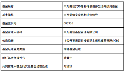 申万菱信安泰惠利纯债债券增聘乔健生