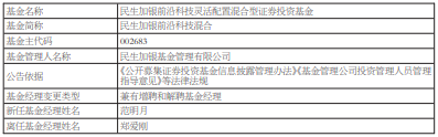 中国经济网北京3月26日讯 今日,民生加银基金公告,民生加银前沿科技增聘范明月,郑爱刚离任。