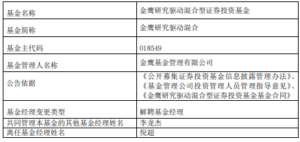 倪超离任金鹰研究驱动混合基金