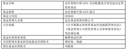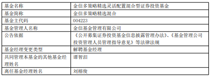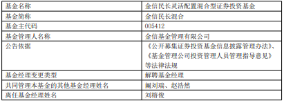 刘榕俊离任金信基金旗下3只混基