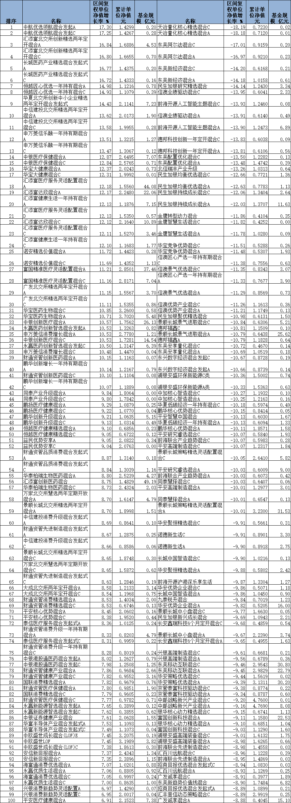 反观跌幅榜,4月份共计59只混合型基金下跌超过10%,其中,天治量化核心精选混合C、天治量化核心精选混合A以-18.19%、-18.18%的收益率垫底。