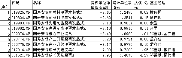 4月份国寿安保旗下9只基金跌超8% 多为"新人"管理
