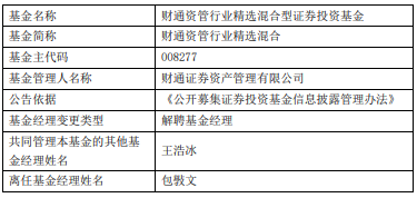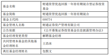 包斅文离任财通资管旗下2基金 1只累计跌近四成