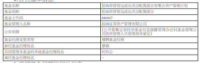 招商资管智远成长灵活混合增聘蔡霖 成立4年半亏63%