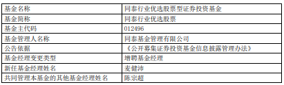 同泰行业优选股票增聘麦健沛 成立近4年亏损近半