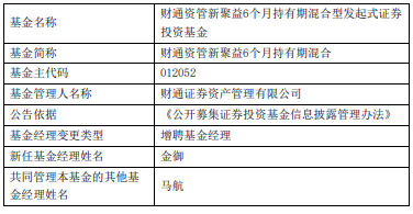 中国经济网北京5月13日讯 今日,财通证券资产管理有限公司公告,财通资管新聚益6个月持有期混合增聘金御。