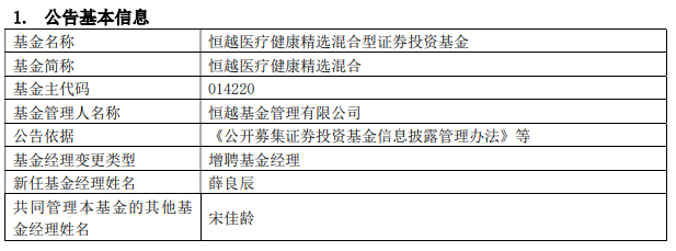 恒越医疗健康精选混合增聘薛良辰 成立3年亏三成