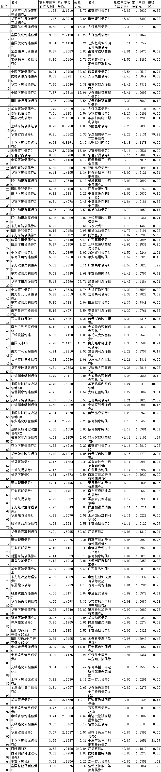 宏利交利3个月定开债券发起式C、信澳鑫安债券C、人保民富债券C、格林聚鑫增强债券C等多只债基的跌幅也超过了2%。