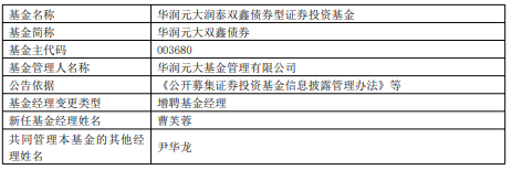 中国经济网北京6月13日讯 今日,华润元大基金公告,华润元大双鑫债券增聘曹芙蓉。