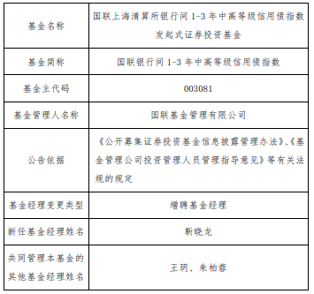 国联银行间1-3年中高等级信用债指数增聘靳晓龙