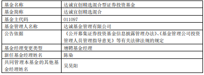 达诚基金旗下2只基金增聘陈染 成立四年跌约四成