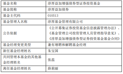 淳厚益加债券与淳厚信泽混合增聘朱宝国