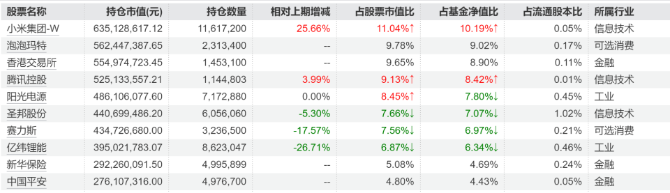 在港股的配置方面,广发行业严选体现得最明显,季报显示,小米集团-W、泡泡玛特、香港交易所、腾讯控股为基金的前四大重仓股,泡泡玛特、香港交易所为新进重仓股,小米集团-W加仓幅度达到25.66%。