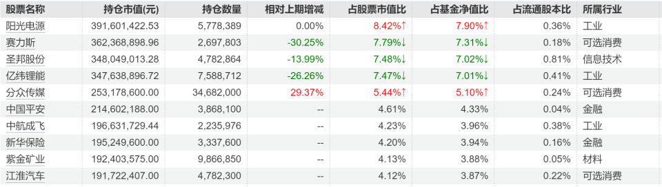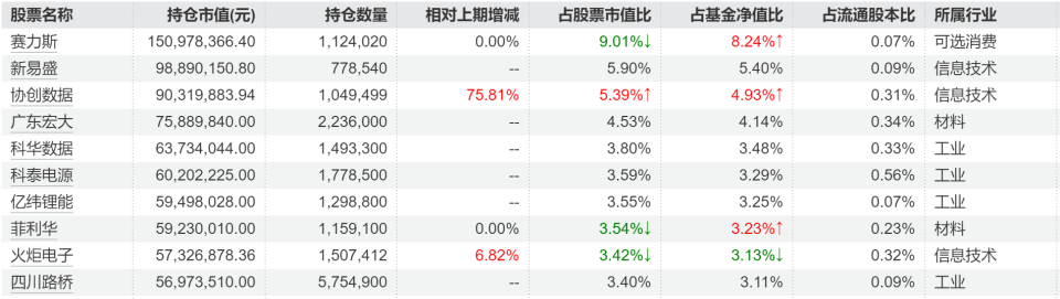 以广发科技先锋为例,二季度报告显示,北方华创季末持仓数量变为161.24万股,比去年一季度末持仓减少约17.69%;赛力斯、亿纬锂能、晶科能源也分别较去年一季度末持仓减少9.14%、4.16%、10.77%。此外,广发行业严选二季报也显示,大幅减持了亿纬锂能和赛力斯。