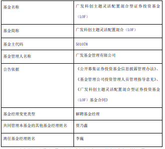 李巍离任广发科创主题灵活配置混合LOF
