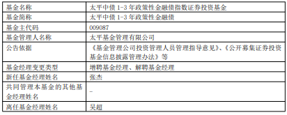 中国经济网北京9月10日讯 今日,太平基金公告,太平中债1-3年政策性金融债增聘张杰,吴超离任。