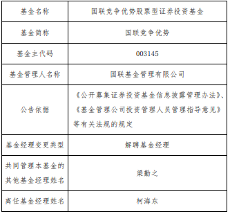 柯海东离任国联策略优选国联竞争优势国联消费精选