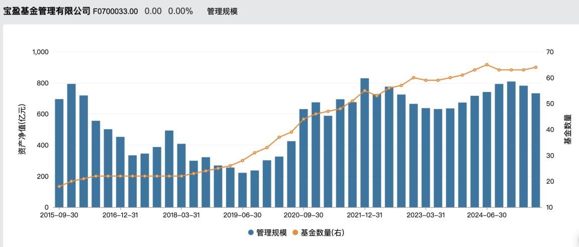 核心投研人才流失的冲击,直接反映在管理规模的波动上。事实上,宝盈基金曾有过辉煌时刻,成立短短四年后管理规模就接近800亿元、行业排名第28位,远超一众知名公司。