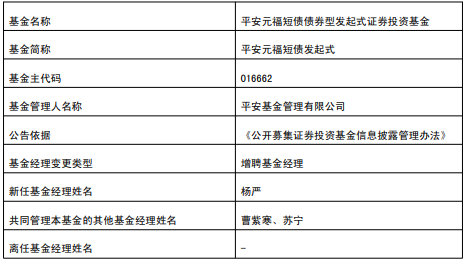 中国经济网北京9月15日讯 近日,平安基金公告,平安元福短债发起式增聘杨严。