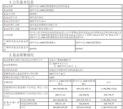 中国经济网北京9月17日讯 今日,银华基金发布关于银华中证A500指数增强型证券投资基金基金合同生效公告。