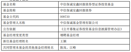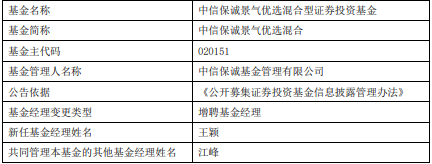 中国经济网北京9月17日讯 今日,中信保诚公告,中信保诚安鑫回报债券、中信保诚景气优选混合增聘王颖。