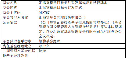 中国经济网北京9月17日讯 今日,汇添富基金公告,赖中立离任汇添富稳乐回报债券发起式。