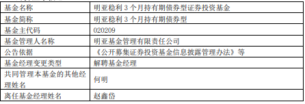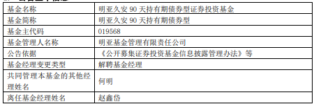 赵鑫岱离任明亚久安90天债基明亚稳利3个月债基