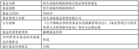 中国经济网北京9月18日讯 今日,恒生前海基金公告,吕程离任恒生前海恒锦裕利混合。