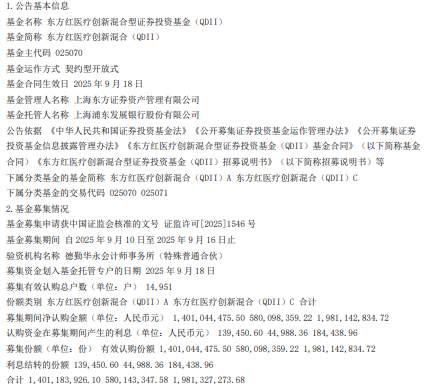 东方红医疗创新混合QDII成立 规模19.8亿元
