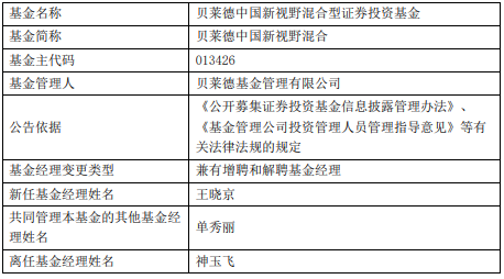 神玉飞离任2只基金 贝莱德中国新视野累计亏3成