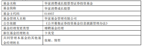 华富消费成长股票增聘卞美莹
