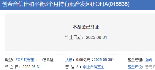 创金合信佳和平衡3个月混合FOF清盘 成立3年没赚钱