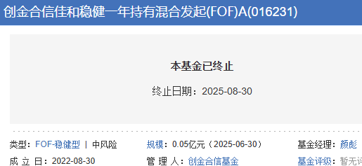 创金合信佳和稳健一年混合FOF清盘 成立3年没赚钱