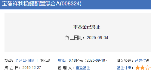 报告称,《宝盈祥利稳健配置混合型证券投资基金基金合同》(以下简称“《基金合同》”)的有关规定,《基金合同》生效后,连续20个工作日出现基金份额持有人数量不满200人或者基金资产净值低于5000万元情形的,基金管理人应当在定期报告中予以披露;连续 50个工作日出现前述情形的,《基金合同》将终止并进行基金财产清算,且无需召开持有人大会,同时基金管理人应履行相关的监管报告和信息披露程序。截至2025年9月3日日终,宝盈祥利稳健配置混合型证券投资基金已连续50个工作日基金资产净值低于5000万元,触发了《基金合同》终止的情形。宝盈基金管理有限公司自2025年9月4日起根据相关法律法规、《基金合同》等规定组织基金财产清算。该基金最后运作日为2025年9月3日,自2025年9月4日起进入清算期。