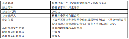 索隽石离任格林鑫利六个月混合格林泓泰三个月定开债