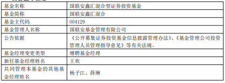 国联安鑫汇混合与国联安鑫隆混合增聘王欢