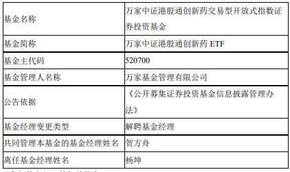 中国经济网北京9月26日讯 今日,万家基金公告,杨坤离任万家中证港股通创新药ETF。