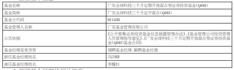 广发全球科技三个月定开混合QDII增聘冯剑峰