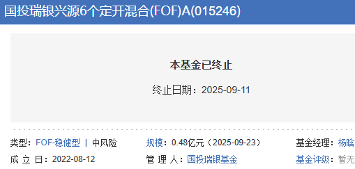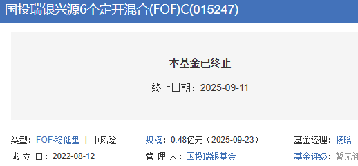国投瑞银兴源6个月定开混合清盘 成立3年微亏