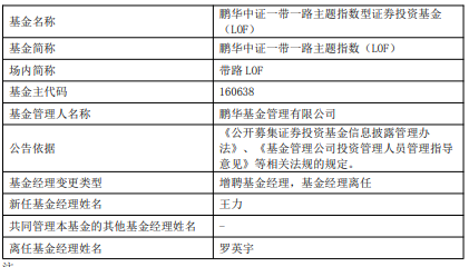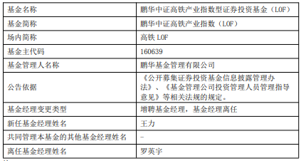 中国经济网北京9月29日讯 近日,鹏华基金公告,鹏华中证高铁产业指数(LOF)、鹏华中证一带一路主题指数(LOF)增聘王力。