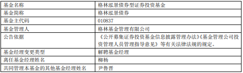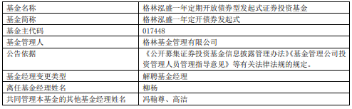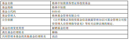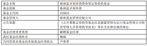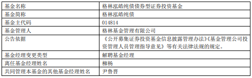 中国经济网北京9月29日讯 近日,格林基金公告,柳杨离任格林泓卓利率债、格林泓利增强债券、格林聚合增强债券、格林泓旭利率债、格林泓景债券、格林中短债、格林泓皓纯债、格林泓盛一年定开债券发起式、格林鑫悦一年持有期混合。