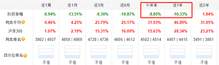其实,不仅是在“924”一周年之际该基金远远落后A股整体表现,从最新数据来看,其今年内的表现也是差强人意。
