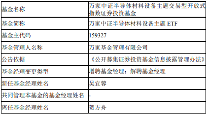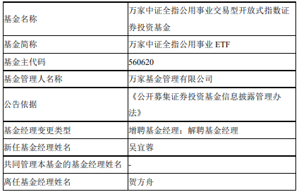中国经济网北京9月30日讯 今日,万家基金公告,万家沪深300成长ETF、万家创业板综合ETF、万家中证半导体材料设备主题ETF、万家中证全指公用事业ETF增聘吴宜蓉。