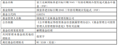 吴弦离任国海富兰克林基金旗下3只FOF基金