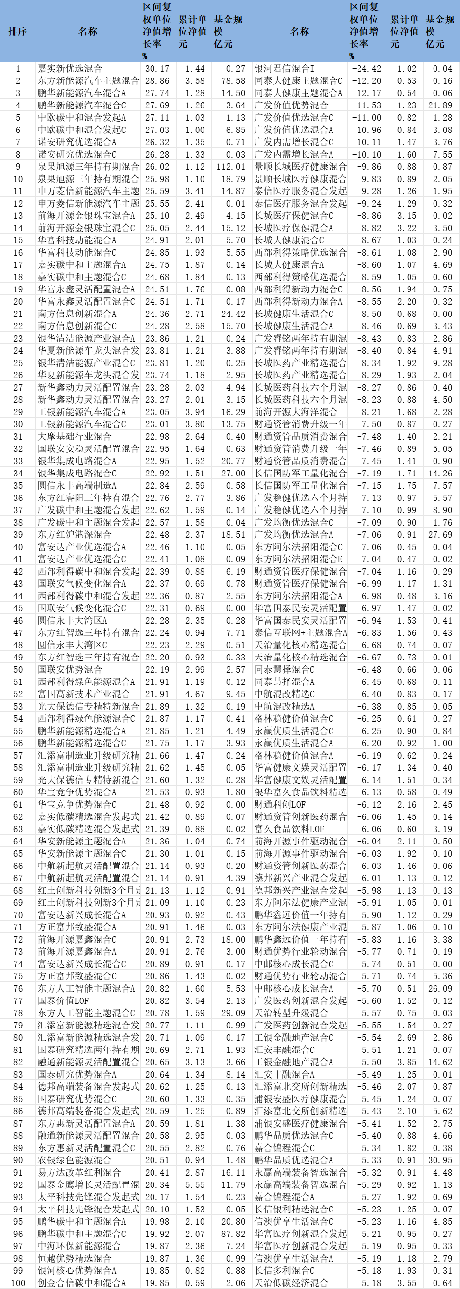9月份共计14只混合型基金涨幅超过25%(含25%),其中嘉实新优选混合、东方新能源汽车主题混合、鹏华新能源汽车混合A、鹏华新能源汽车混合C、中欧碳中和混合发起A、中欧碳中和混合发起C分别以30.17%、28.86%、27.74%、27.69%、27.11%、27.03%的收益率领涨。