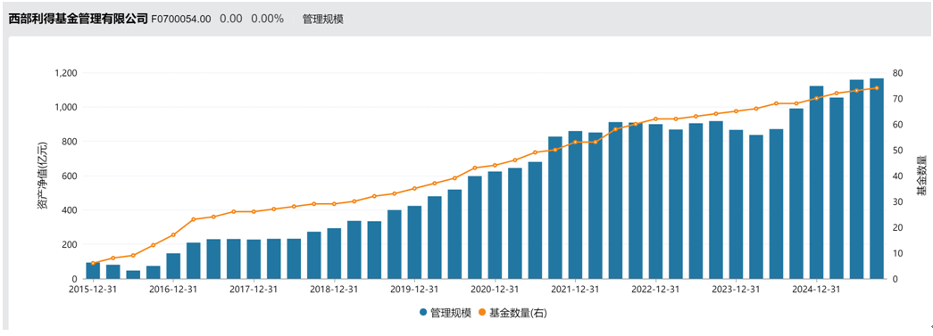 在贺燕萍任期内,西部利得基金实现了跨越式发展。Wind数据显示,公司管理规模从2015年末的93.74亿元增长至2025年二季度末的1158.25亿元,市场排名55,相比2015年底上升了18个位次。公募产品数量从6只扩充至74只。