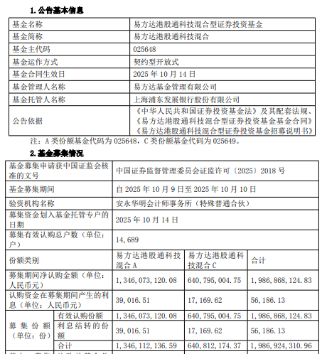 中国经济网北京10月15日讯 今日,易方达基金发布易方达港股通科技混合型证券投资基金基金合同生效公告。