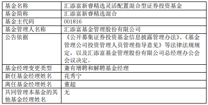 汇添富新睿精选混合增聘花秀宁 董超离任