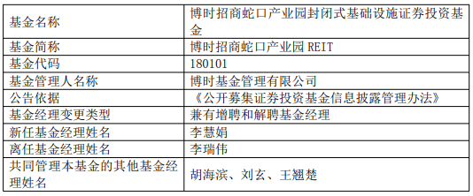 中国经济网北京10月17日讯 今日,博时基金公告,博时招商蛇口产业园REIT增聘李慧娟,李瑞伟离任。